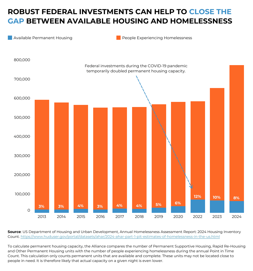 On a federal level, the gap between supply and demand for housing for the homeless was already skyrocketing before the Trump administration took office (graphed above) but exploded in the past year, thanks to a combination of funding rescissions and deep staffing cuts in departments serving the poor and unhoused. That notably includes the departments of Housing and Urban Development (HUD) and of Health and Human Services, which just in the past couple of days have been whacked with further unprecedented layoffs, shredding what little remains of an already tattered social safety net. If there’s any doubt about the local implications of all this, see the Blue Ridge Area Food Bank and its increasingly alarmed appeals for community support.